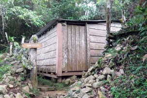Weiter geht’s über Stock und Stein zum Krankenhaus der Commandancia, wo die Verwundeten Soldaten untergebracht wurden. Die einzelnen Hütten liegen relativ weit auseinander, so kommen wir erst nach einigen Gehminuten zur nächsten Hütte, der Küche. Nicht weit davon entfernt ist es dann soweit: wir stehen vor der Casa de Fidel. Miguel erklärt uns, dass die Hütte sieben Fluchtwege hat und öffnet dabei sämtliche Türen und Fenster rund um die Hütte um dies zu demonstrieren. Der siebte Fluchtweg ist eine Falltür. Die sanitären Anlagen bestehen aus einem Plumpsklo.
